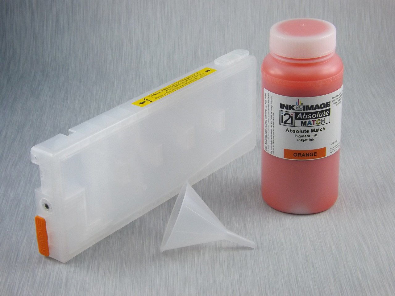 1 x Refillable Cartridge for Roland/Mutoh/Mimaki Aqueous Printers with 1 x 0.5 Liter Bottle of i2i Absolute Match E95 pigment ink - Orange