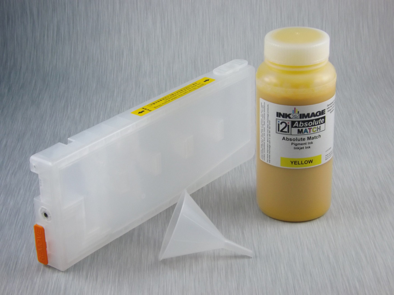 Click the button below to add the 1 x Refillable Cartridge for Roland/Mutoh/Mimaki Aqueous Printers with 1 x 0.5 Liter Bottle of i2i Absolute Match E95 pigment ink - Yellow to your wish list.