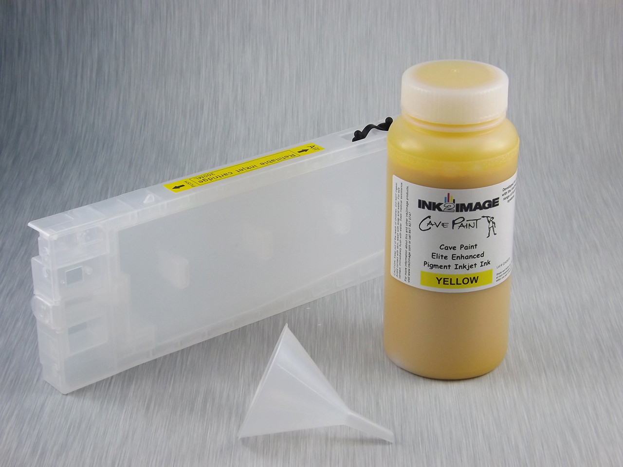 1 x Refillable Cartridge for the Epson Pro 4800 with 1 x 0.5 Liter Bottle of Cave Paint Elite Enhanced pigment ink - Yellow (chip resetter needs to be ordered separately)