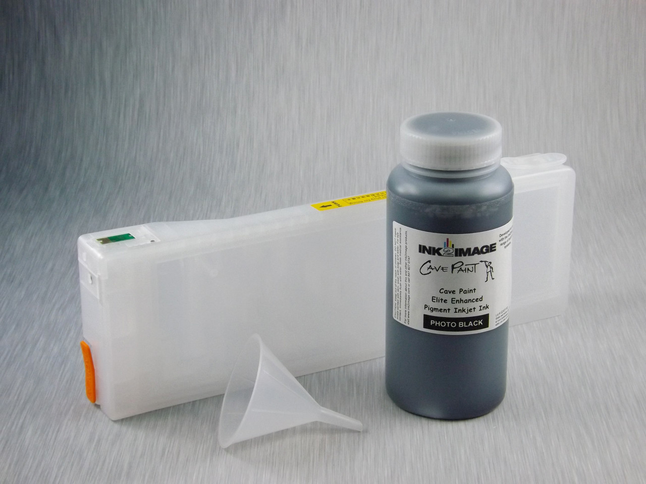 1 x Refillable Cartridge for the Epson Pro 7700/7890/7900/9700/9890/9900 with 1 x 0.5 Liter Bottle of Cave Paint Elite Enhanced pigment ink - Photo Black (chip resetter needs to be ordered separately)