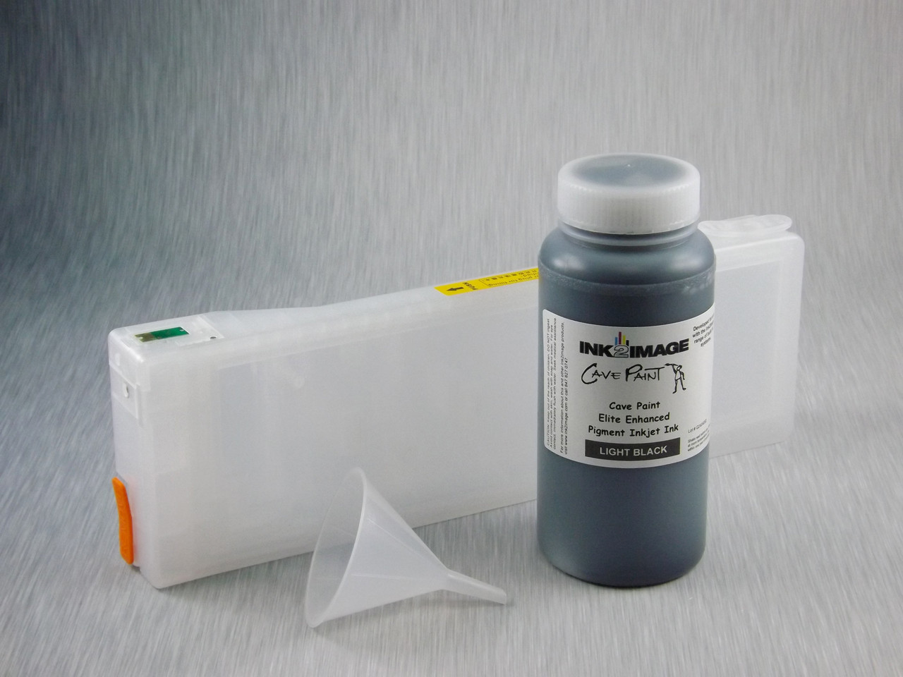 1 x Refillable Cartridge for the Epson Pro 7890/7900/9890/9900 with 1 x 0.5 Liter Bottle of Cave Paint Elite Enhanced pigment ink - Light Black (chip resetter needs to be ordered separately)