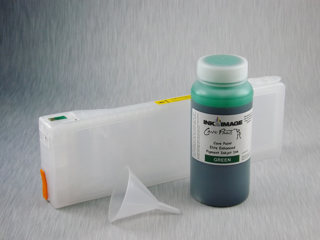 1 x Refillable Cartridge for the Epson Pro 7900/9900 with 1 x 0.5 Liter Bottle of Cave Paint Elite Enhanced pigment ink - Green (chip resetter needs to be ordered separately)