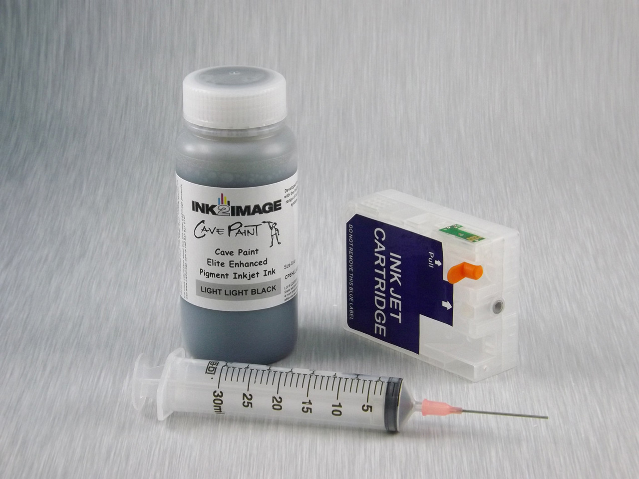 Light Light Black Refillable Cartridge for the Epson Pro 3800/3880 with 1 x 8 oz Bottle of Cave Paint Elite Enhanced Light Light Black pigment ink (needs chip from original cartridge)