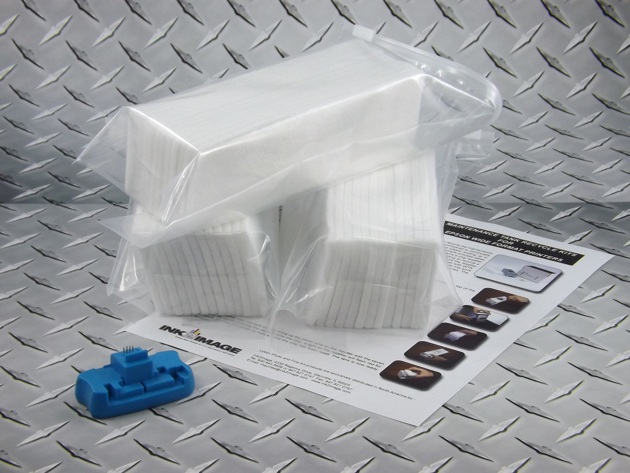 Maintenance tank recycle kit for Epson Pro 7700 and 9700 including chip resetter and three sets of absorbent wadding