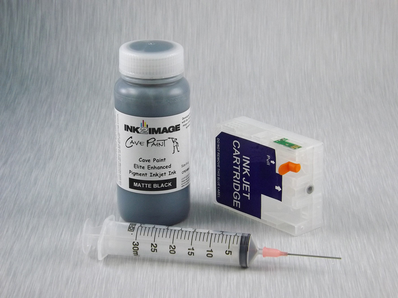 Matte Black Refillable Cartridge for the Epson Pro 3800/3880 with 1 x 8 oz Bottle of Cave Paint Elite Enhanced Matte Black pigment ink (needs chip from original cartridge)