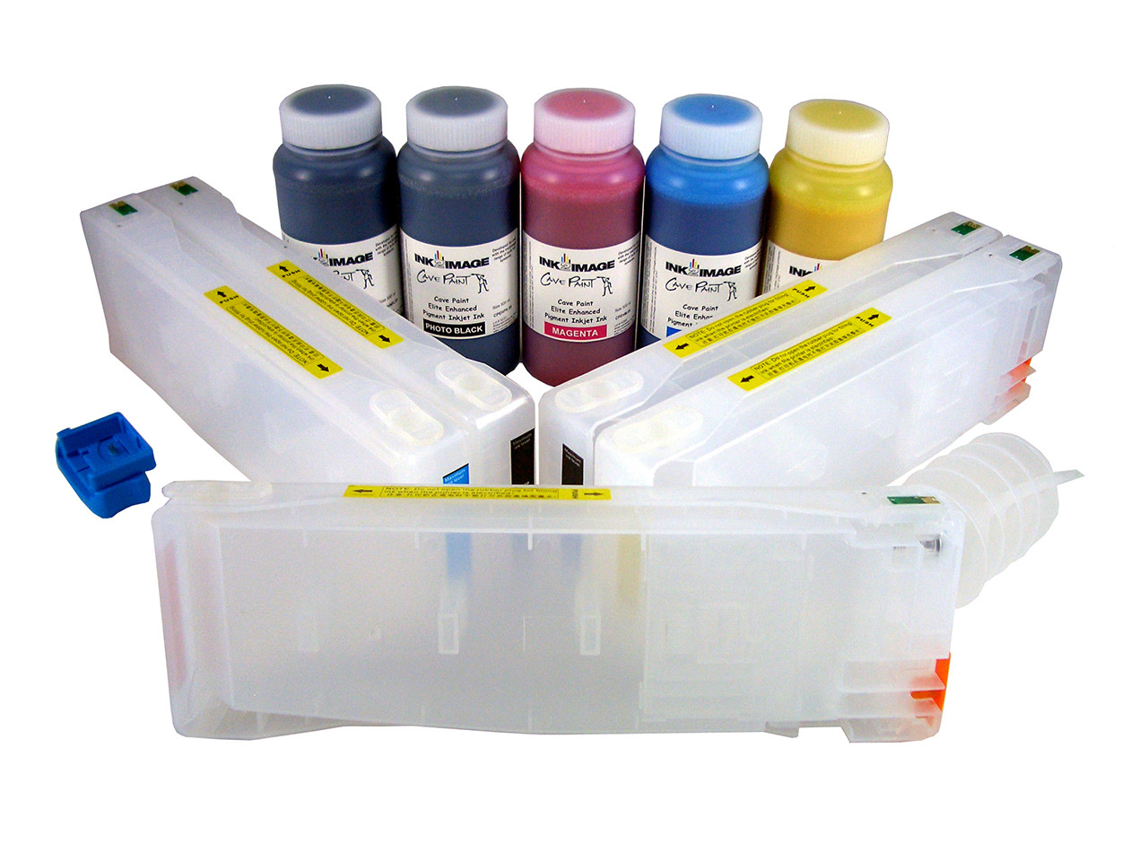 Refillable Cartridge Kit for Epson Pro 7700/9700 with 5 x 500 ml bottles of Cave Paint Elite Enhanced pigment inks