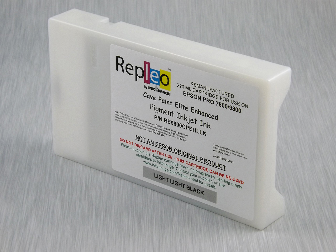 Repleo Remanufactured Epson T603900 220 ml Cartridge for the Epson Pro 7800/9800 filled with Cave Paint Elite Enhanced Pigment ink - Light Light Black