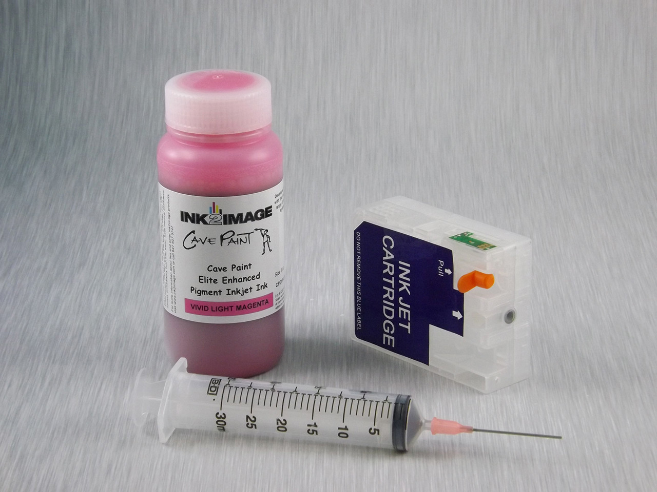Vivid Light Magenta Refillable Cartridge for the Epson Pro 3880 with 1 x 8 oz Bottle of Cave Paint Elite Enhanced Vivid Light Magenta pigment ink (needs chip from original cartridge)